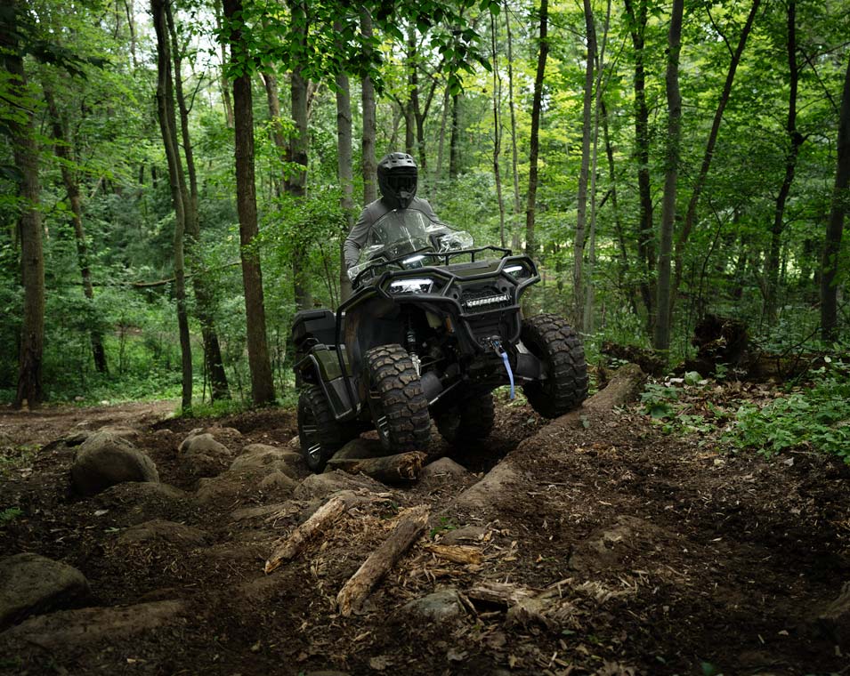 - 12-Volt-Steckdose, Ladeanschluss im Pod, PIN-aktiviertes Sicherheitssystem (P.A.S.S.), Frontgepäckträger-Erweiterung, Windenhalterung enthalten, CV-Abdeckungen